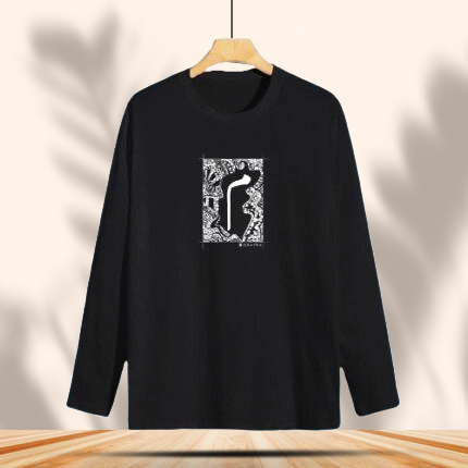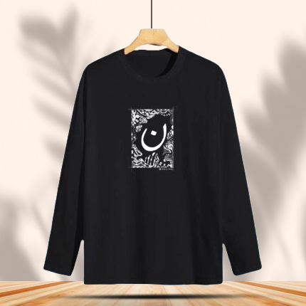 This black tee features a hand-drawn Urdu letter framed in intricate Remtem-style detailing, a bold collaboration with Ravesh.